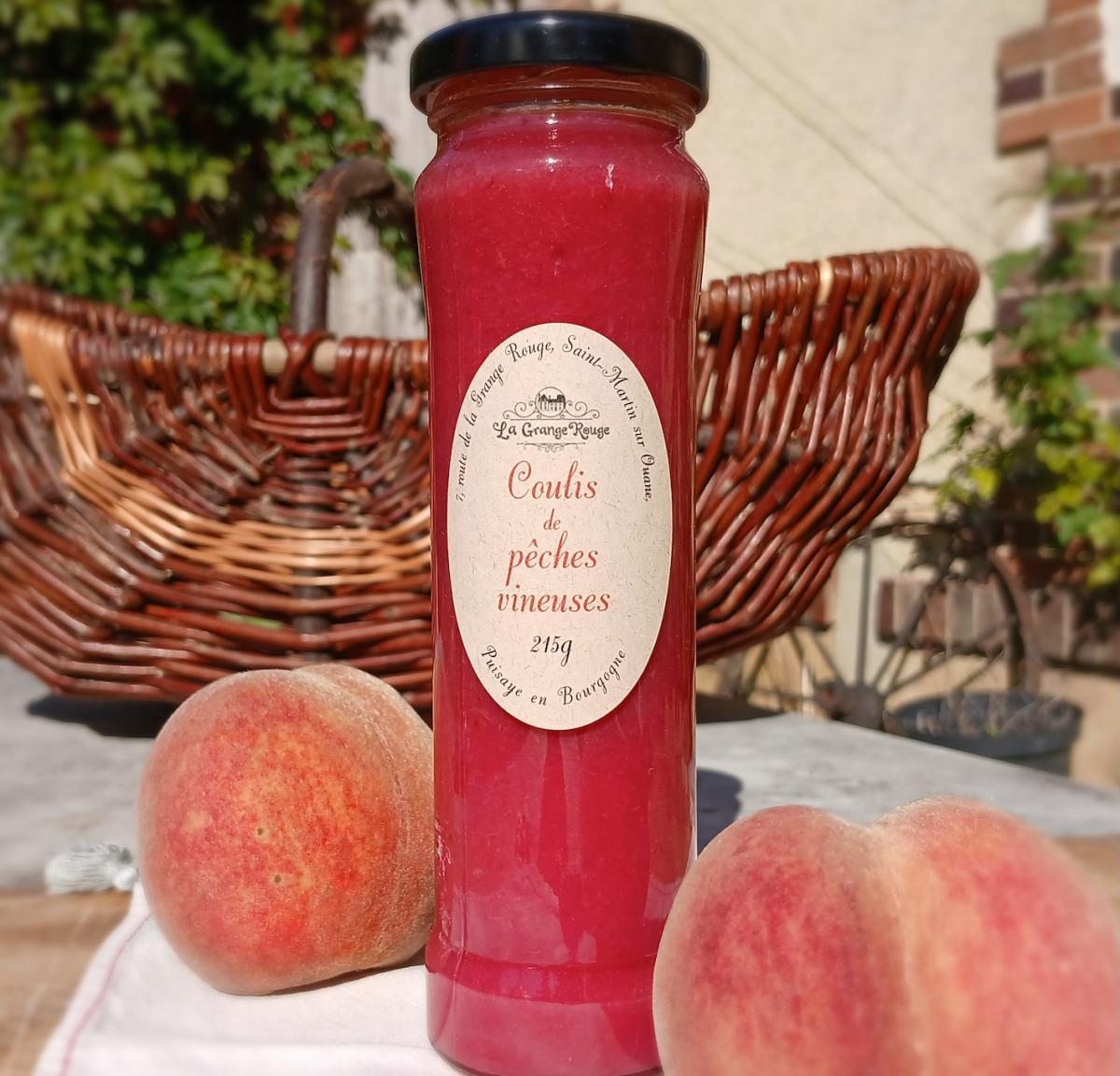 D'une belle couleur "vieux rose", synonyme d'amour sans âge et de désir, ce coulis est préparé avec mes pêches vineuses, particulièrement juteuses, sucrées et parfumées. Un élégant et délicat accompagnement de vos sorbets, gâteaux ou fromage frais.