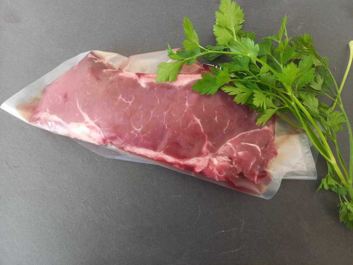 une tranche de faux filet de buffle sous vide en 150g