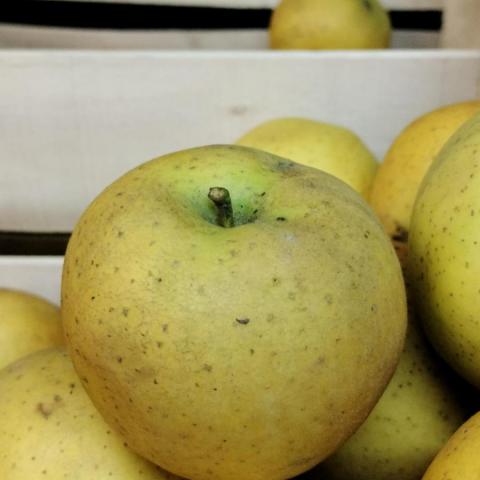 Cette variété de pomme évolue au fil de la saison: d'abord croquante et juteuse, elle se transforme et gagne en arômes ce qu'elle perd en jus. Les connaisseurs l'aiment autant fraîche que fripée à la fin de l'hiver.