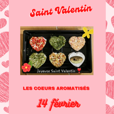 Plateau de fromage au lait cru entier de Vache ; présenté sous forme de 6 Coeurs aromatisés à partager en amoureux.