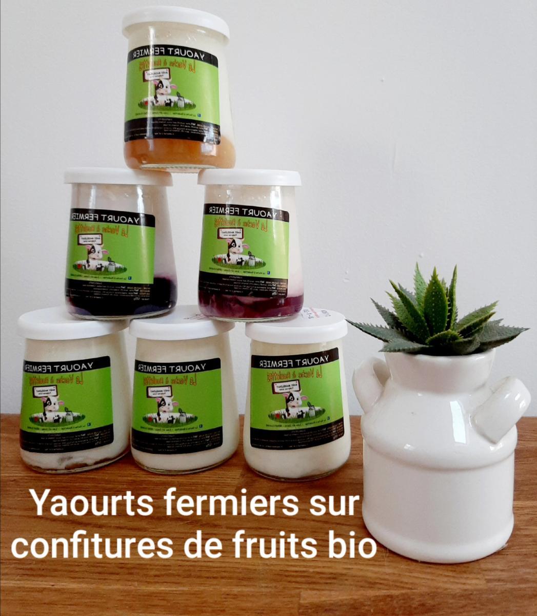 Lot de 2 Yaourts fermiers au LAIT entier, préparation de fruits bio CASSIS, sucre 4%, ferments lactiques.