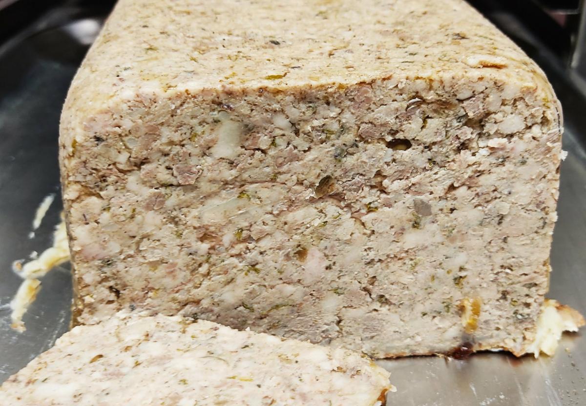 ingrédients: viande et gras de porc, foie, oignon, persil, ail, sel; poivre.
