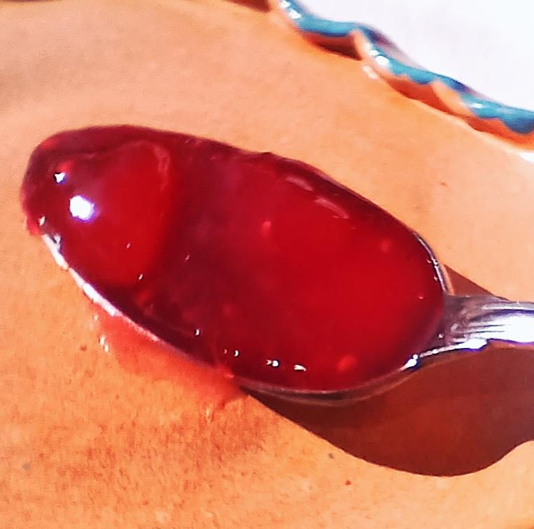 Amaretto, agar agar. 66 g de fruit pour 100 g. Teneur totale en sucres : 55%.