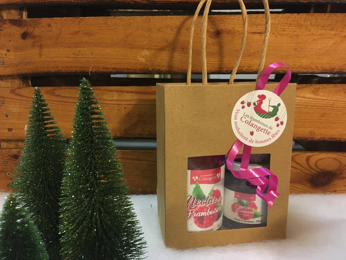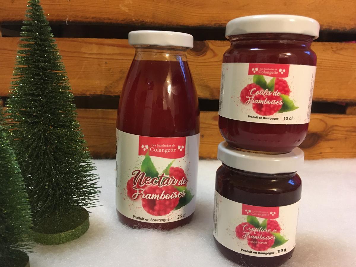 Nous vous proposons pour les fêtes ce petit assortiment permettant de découvrir les principaux produits des Framboises de Colangette.
