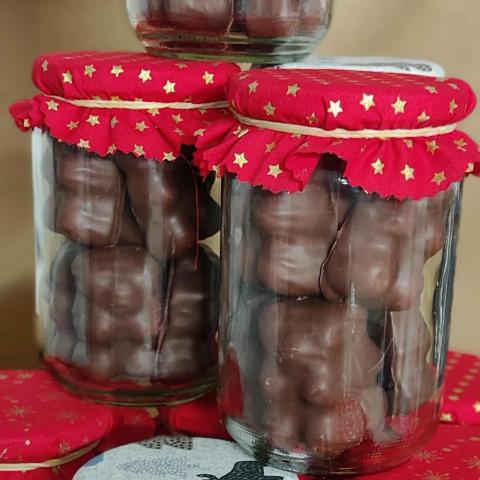 Coralie pâtissière/chocolatière de formation vous propose des chocolats élaborés avec deux couverture certifiées bio et équitable.